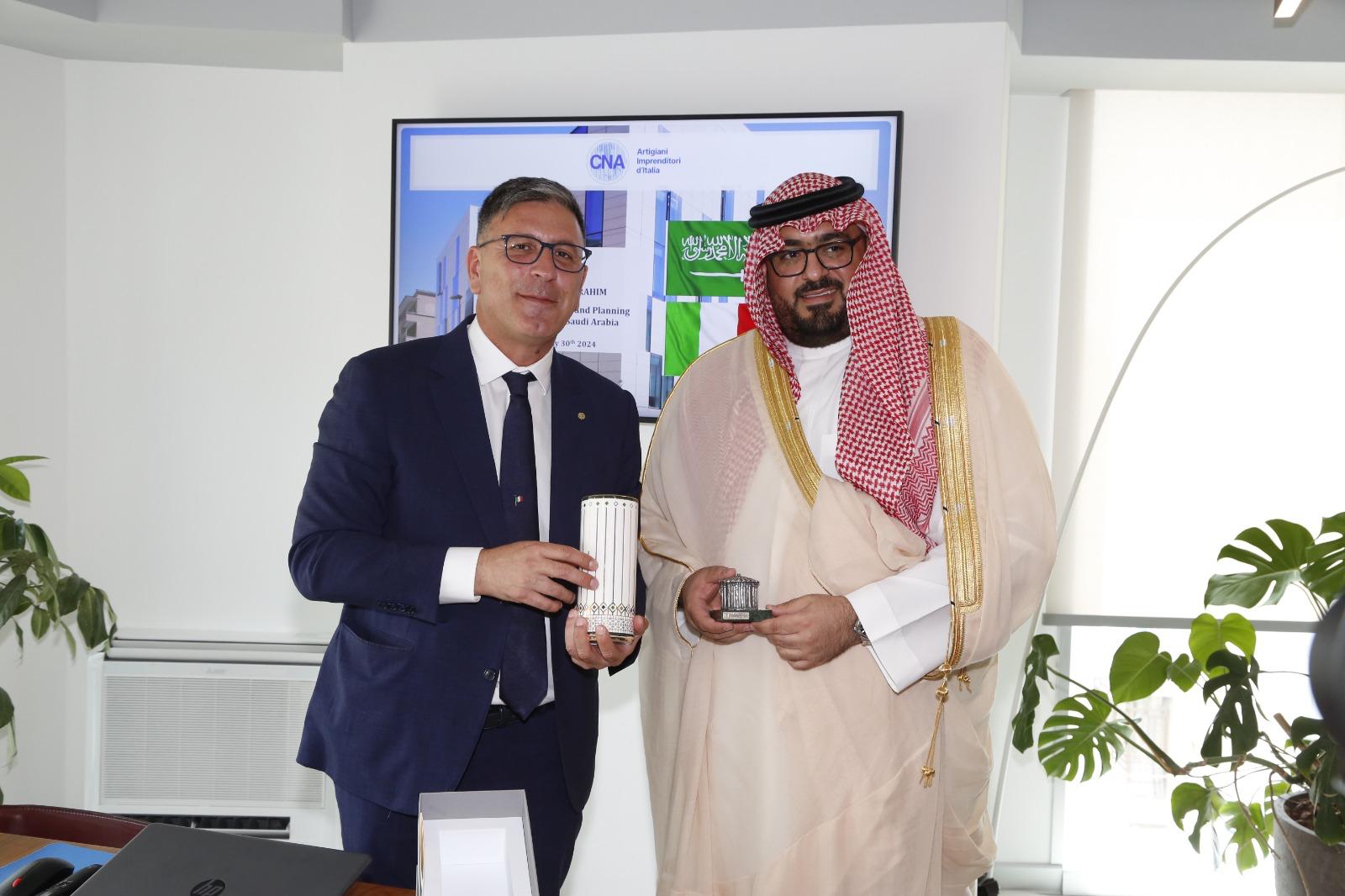 التقى وزير الاقتصاد والتخطيط السعودي فيصل الإبراهيم اليوم في روما في مقر اتحاد الحرف الوطنية والمؤسسات الصغيرة والمتوسطة مع رئيس الاتحاد داريو كوستانتيني والأمين العام أوتيلو جريجوريني.