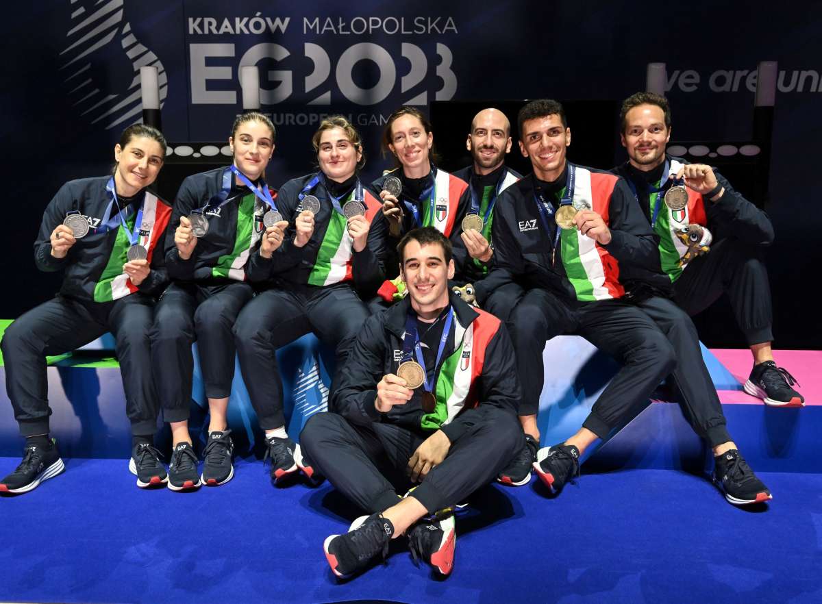 ROMA (ITALPRESS) – Sedici medaglie azzurre in dodici gare nell’Europeo “sdoppiato” tra Plovdiv (10 podi in sei gare Individuali) e Cracovia (sei medaglie in altrettante prove a Squadre). Un record assoluto per l’Italia, che vince anche il Medagliere continentale complessivo davanti alla Francia, superando il primato di 14 podi che era stato stabilito un anno fa ad Antalya. Il verdetto è arrivato in Polonia, dove tutte le Squadre azzurre – sei su sei – sono riuscite a salire sul podio dei Giochi Europei, che valevano per la Qualifica Olimpica e come campionato continentale per Team, dopo che la prima fase – solo individuale – si era svolta a Plovdiv per consentire anche la partecipazione degli atleti russi neutrali e non militari. E’ stata, insomma, un’altra splendida pagina di storia della scherma azzurra quella scritta a Cracovia. Che inorgoglisce il presidente federale Paolo Azzi. “Europei straordinari, lo dicono i risultati e le prestazioni offerte dai nostri atleti in tutte le armi – spiega il numero uno della Fis – Eravamo reduci da un Europeo Individuale da incorniciare e, dopo la legittima euforia per i 10 podi a Plovdiv, sapevamo che confermarsi sarebbe stato ancora più difficile. Ma ci siamo riusciti, portando tutte e sei le nostre squadre a medaglia, vincendo due ori con le formazioni di fioretto e conquistando punti importanti per la Qualifica Olimpica. Una grande gioia, poi, è stata condividere questi successi con tutta la missione Italia Team del Coni, che ringrazio per l’impeccabile e incessante supporto. La splendida organizzazione di Casa Italia ha reso ancor più bella questa esperienza, per i nostri atleti e per tutta la delegazione. Siamo fieri di far parte di questa squadra e orgogliosi, come scherma azzurra, d’aver dato il nostro contributo al grande risultato italiano in questi Giochi Europei di Cracovia”. Sei squadre in gara, tutte a medaglia alla Tauron Arena. Ancora sugli scudi il fioretto. Al tramonto del doppio appuntamento europeo, infatti, la sentenza è che il gruppo del ct Stefano Cerioni ha vinto tutto. Dopo le sei medaglie individuali di Plovdiv (con Martina Batini e Filippo Macchi d’oro), le squadre di fiorettiste e fiorettiste si sono confermate sul gradino più alto del podio. Campioni d’Europa il team femminile con Martina Batini, Martina Favaretto, Francesca Palumbo e Alice Volpi, e il quartetto maschile composto da Daniele Garozzo, Alessio Foconi, Tommaso Marini e Filippo Macchi. Un dominio totale, quello del fioretto azzurro, che ha conquistato il pubblico televisivo, visto che la finale maschile è stato l’evento più visto degli European Games di Cracovia sulla piattaforma Italia Team TV del Coni. “Grandissimo Europeo. Ma adesso testa al Campionato del Mondo di Milano”, è stato il commento di Cerioni dopo il doppio successo in finale sui transalpini. Si sono fatte valere anche la sciabola e la spada, guidate rispettivamente dai ct Nicola Zanotti e Dario Chiadò. Doppio argento per le formazioni degli sciabolatori e delle sciabolatrici, fermatesi a un passo dal titolo europeo, entrambe, solo al cospetto della Francia. Prova da applausi per Luca Curatoli, Michele Gallo, Luigi Samele e Matteo Neri, con un pensiero speciale per quest’ultimo che, a causa di un brutto infortunio patito durante la gara, non ha potuto festeggiare sul secondo gradino del podio insieme ai suoi compagni. Ma tutto il gruppo Italia ha pensato e ora fa il tifo per Matteo, aspettandone il ritorno. E strepitoso è stato anche il secondo posto delle ragazze della sciabola, firmato da Martina Criscio, Rossella Gregorio, Chiara Mormile ed Eloisa Passaro. Due volte sul terzo gradino del podio la spada. Bronzo prezioso per la squadra femminile, con Rossella Fiamingo, Federica Isola, Alberta Santuccio e Mara Navarria che si sono confermate ancora nel gotha internazionale di specialità. E di grandissimo valore è stato anche il bronzo degli spadisti, griffato da Davide Di Veroli, Federico Vismara, Andrea Santarelli e Gabriele Cimini. Tutte e sei le squadre italiane a medaglia, ma non va dimenticato anche il bronzo individuale della sciabolatrice Eloisa Passaro, che ha di fatto “aperto” le giornate magiche della scherma italiana a Cracovia. Successi figli di un lavoro di team, con in testa il presidente Fis Azzi e il vicepresidente vicario Maurizio Randazzo, che in Polonia è stato capo delegazione. “Un grande successo di tutta la delegazione – ha commentato Randazzo – I nostri atleti sono stati protagonisti di giornate da ricordare, con l’unica nota dolente dell’infortunio a Matteo Neri al quale va tutto il nostro affetto e sostegno. Abbiamo dimostrato quanto l’Italia sia competitiva a livello internazionale, stabilendo il nuovo record di 16 medaglie europee. E ora concentriamoci sul Mondiale di Milano, che affronteremo con lo stesso spirito di squadra”.