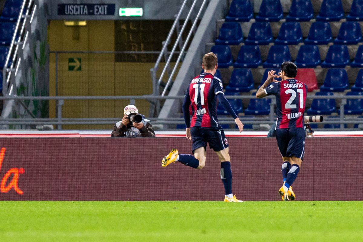 Una doppietta di Soriano e i gol di Skov Olsen e Palacio permettono al Bologna di conquistare i primi tre punti stagionali in campionato dopo la sconfitta esterna contro il Milan per 2-0. La squadra di Mihajlovic batte 4-1 il Parma e condanna Liverani al secondo ko consecutivo. La prima frazione di gioco è un dominio del Bologna dal punto di vista del possesso palla (67% contro il 33% degli ospiti) ma non su quello delle occasioni. La partenza del Parma è infatti ottima con la prima chance sui piedi di Gervinho che dopo una rapida incursione in area è murato al momento del tiro da Tomiyasu. Al 16’ inizia lo show di Soriano: il centrocampista prima va in gol sugli sviluppi di un calcio d’angolo con un colpo di testa che spinge il pallone oltre la linea nonostante il tentativo di Sepe, poi al 30’ firma il raddoppio con un destro a giro dal limite dell’area deviato da Bruno Alves quel che basta per mettere fuori dai giochi il portiere avversario. Nel primo tempo il Parma può anche recriminare per un episodio da moviola. Al 32’ Karamoh in area mette a sedere Tomiyasu che tocca col braccio da terra: per Valeri e il var non c’è nulla.