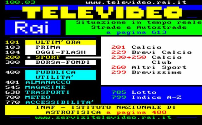ROMA (ITALPRESS) – Il 2024 è un anno importante per la Rai: ricorrono infatti i cento anni della Radio e i settant’anni della Televisione. Ma accanto a queste due ricorrenze ce n’è una terza non meno rilevante per la storia del servizio Pubblico Italiano: quaranta anni fa, nasceva il servizio Televideo. Era il 15 gennaio 1984 e per la prima volta lo spettatore poteva sfogliare la propria tv, usando il telecomando per passare da una pagina all’altra dello schermo e scegliere quali notizie e informazioni seguire. In occasione di questo compleanno, Rai News 24 e Rai Pubblica Utilità hanno previsto una serie di iniziative, a partire dalla pagina 428 di Televideo che ripercorrerà il quarantennale cammino del servizio, pubblicando materiali di repertorio e di contenuti appositamente realizzati sul sito Televideo e sui profili social.
