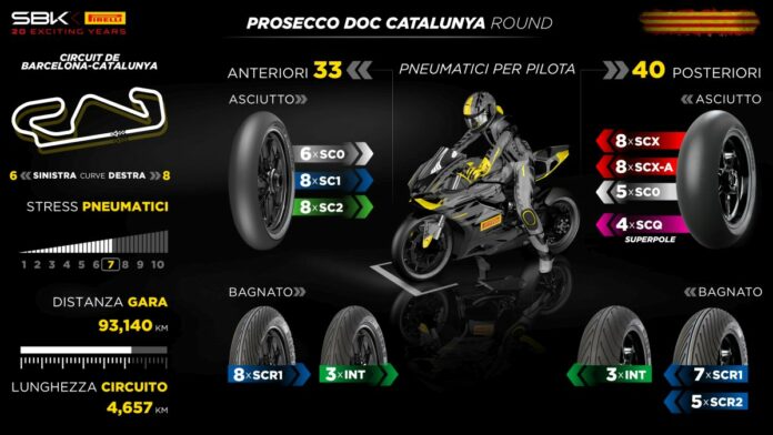 Nel WorldSBK come anteriore dunque, oltre alle soluzioni già utilizzate da inizio anno, ovvero la media SC1 e la dura SC2, nel quantitativo di 8 pezzi a pilota per ciascuna mescola, per la prima volta i piloti avranno a disposizione anche una SC0 anteriore, ovvero una mescola soluzione in mescola morbida che dovrebbe offrire un elevato livello di grip così da bilanciare quello garantito dalle soluzioni più morbide al posteriore. Il circuito di Barcellona può essere particolarmente impegnativo per gli anteriori perchè è molto tecnico, con curve ampie e veloci, rettilinei e diversi saliscendi e frenate molto brusche, come quella alla prima staccata dopo il lungo rettilineo del traguardo. Al posteriore confermate le soluzioni viste in azione ad Assen, con la super morbida SCX di gamma e quella di sviluppo SCX-A (specifica B0800) per continuare il raffronto diretto tra le due opzioni. A queste due si aggiunge la morbida SC0 e, solo per Superpole e Superpole Race, la extra soft SCQ. Nel WorldSSP, all’anteriore i piloti continueranno ad avere a disposizione due SC1 in misura diversa: quella standard per classe WorldSSP in 120/70 e quella utilizzata dalla WorldSBK in 125/70 per valutare un possibile passaggio anche per questa classe alla misura maggiorata dopo un primo test effettuato ad Assen. La terza ed ultima soluzione è rappresentata dalla SC2 di gamma. Per il posteriore i piloti potranno scegliere tra SCX e SC0 di gamma, quest’ultima più protetta in caso di basse temperature e usure elevate. “A Barcellona assisteremo a quello che, a suo modo, può essere considerato come un debutto storico in questi 20 anni di Pirelli in Superbike – sottolinea Giorgio Barbier, direttore Racing Moto Pirelli – Per la prima volta in assoluto, a disposizione dei piloti WorldSBK ci sarà un Diablo Superbike in mescola morbida SC0 anche all’anteriore. Dopo aver ampliato la gamma nelle passate stagioni con l’introduzione di soluzioni posteriori in mescole morbide, come la SCX nel 2020 e la SCQ nel 2022, e aver lavorato sulle nuove SC1 e SC2 anteriori, ora abbiamo deciso che era arrivato il momento di completare la gamma lavorando anche su una anteriore in mescola morbida SC0 che fosse in grado di bilanciare l’elevato livello di grip offerto dalle nuove soluzioni morbide introdotte per l’asse posteriore. I piloti hanno già avuto modo di testare questa nuova soluzione anteriore, in specifica B1148, nei test invernali e in quelli svolti proprio a Barcellona a fine marzo ma questa sarà la prima volta in assoluto che l’avranno a disposizione in un weekend di gara. L’obiettivo, in linea con la nostra filosofia di mettere a disposizione di tutti i motociclisti i pneumatici utilizzati nel Mondiale Superbike, è quello di sviluppare questa SC0 nel corso della stagione per poi renderla una soluzione di gamma, quindi acquistabile sul mercato, nel 2024”.