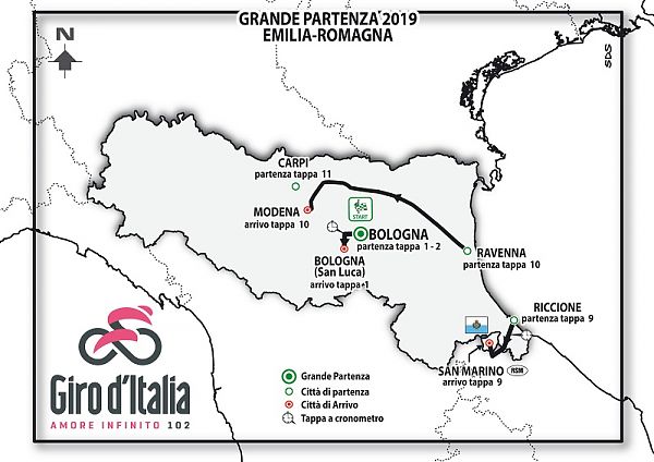 Il Giro d’Italia 2019 partirà, sabato 11 maggio, dall’Emilia-Romagna e in particolare dal suo capoluogo, Bologna, dove prese il via esattamente 25 anni fa, nel 1994. Un progetto ad ampio raggio, concordato da RCS Sport con la Regione Emilia Romagna, che coinvolgerà buona parte del territorio regionale e nello specifico altre città di partenza e arrivo come Riccione, Ravenna, Modena e Carpi. La Corsa Rosa, in programma dall’11 maggio al 2 giugno, organizzata da RCS Sport/La Gazzetta dello Sport è giunta alla sua 102a edizione. La prima tappa, 8,2 chilometri a cronometro, avrà i primi 6 km piatti e i successivi 2 in fortissima ascesa con arrivo sul San Luca. Prevista domenica 12 maggio una seconda tappa, con partenza da Bologna in direzione Sud. L’Emilia ospiterà poi altre tre frazioni: la nona, una cronometro individuale di 34,7 chilometri da Riccione a San Marino; la decima, la Ravenna-Modena di 147 Km per velocisti; l’11esima, con partenza da Carpi in direzione Ovest. Paolo Bellino, Amministratore Delegato e Direttore Generale di RCS Sport ha sottolineato come “dopo 25 anni e per seconda volta nella sua storia ultracentenaria il Giro d’Italia partirà da Bologna. Questa manifestazione è uno dei fiori all’occhiello di RCS e del nostro Paese. Questa edizione sarà praticamente tutta nei confini nazionali e ci darà ancora una volta la possibilità di mostrare al mondo le bellezze e le eccellenze dell’Italia a cominciare da questa stupenda regione che è l’Emilia-Romagna. Attraverso i mezzi di comunicazione che seguono il nostro evento milioni di persone potranno godersi lo spettacolo non solo sportivo. Le immagini televisive verranno distribuite e viste in 198 Paesi nei Cinque Continenti. Il Giro è un manifestazione in continuo sviluppo che negli ultimi anni è cresciuto e si sta posizionando tra gli eventi più seguiti nel panorama sportivo internazionale. Siamo certi che anche in questa edizione sapremo, insieme ai nostri partner – istituzioni, sponsor, media – dare lustro a questa corsa e a questa Nazione”. Mauro Vegni, Direttore del Giro d’Italia ha dichiarato: “Questo progetto con la Regione Emilia-Romagna nasce da un rapporto ormai consolidato da qualche anno e che ha visto molte tappe importanti del Giro, partire, arrivare o transitare. Con il Presidente Bonaccini abbiamo convenuto che era giunto il momento di creare qualcosa di indelebile e indimenticabile con la partenza da Bologna e altre tappe che coinvolgeranno buona parte territorio emiliano-romagnolo dalla costa alla montagna passando per la pianura. Un territorio che ha anche una forte connotazione ciclistica, oltre che turistica – e che ha dato grandi campioni al mondo delle due ruote – merita questo riconoscimento. A differenza degli anni scorsi abbiamo pensato, di concerto con la Regione, di non fare tre tappe consecutive in avvio ma di dare una connotazione particolare ad ogni frazione. La partenza da Bologna, con una cronometro, che parte dal centro e finisce sul San Luca dà un’identità forte a questa grande partenza. L’altra prova contro il tempo, da Riccione a San Marino, anch’essa molto impegnativa, sarà invece la tappa del vino e in particolare quest’anno dedicata al Sangiovese. Poi la Ravenna-Modena e la ripartenza da Carpi il giorno seguente mostreranno altri luoghi e territori con le loro eccellenze storiche, culturali e culinarie”.