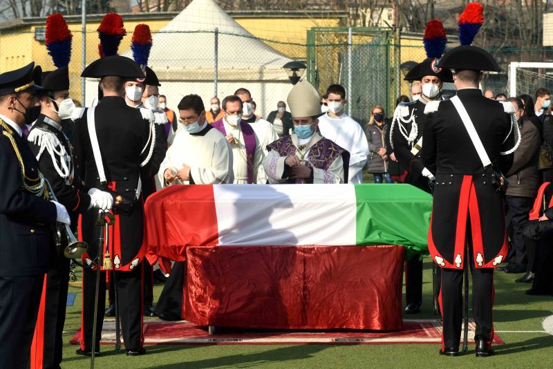 LIMBIATE (MONZA) (ITALPRESS) – Ultimo saluto di Limbiate, cuore della Brianza, a Luca Attanasio, l’ambasciatore italiano ucciso in un agguato in Congo assieme al carabiniere Vittorio Iacovacci. Il paese di nascita del diplomatico, al quale è stato sempre legato nonostante i suoi impegni in giro per il mondo, si è stretto attorno al feretro avvolto nel tricolore. All’arrivo nel campo sportivo della cittadina la bara è stata accolta da un lunghissimo applauso. L’arcivescovo di Milano, monsignor Mario Delpini, che ha presieduto le esequie, nella sua omelia ha voluto consegnare parole di conforto alla famiglia e ai tanti amici che hanno affollato il piccolo stadio. “Viene il momento in cui ciascuno sta solo alla presenza del Signore. Finiscono i clamori. Il Signore gli chiederà da dove vieni, e Luca risponderà che viene da una terra dove si muore e che non interessa a nessuno. Il Signore chiederà perchè Luca sei ferito? E lui risponderà perchè ci sono Paesi dove la speranza è proibita e dove la gente che non conta continua ad essere ferita. Il Signore gli dirà: non volgerti indietro, Luca, fratello mio. Troppo breve è stata la tua vita, perciò non volgerti indietro, tu sarai giovane per sempre”.