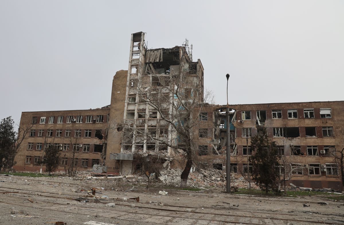 MARIUPOL, UKRAINE – APRIL 9, 2022: A destroyed building in Primorsky District of Mariupol. The Russian Armed Forces are carrying out a special military operation in Ukraine in response to requests from the leaders of the Donetsk People's Republic and Lugansk People's Republic for assistance. Valentin Sprinchak/TASS/Sipa USA (Mariupol - 2022-04-09, ???????? ???????? / ipa-agency.net) p.s. la foto e' utilizzabile nel rispetto del contesto in cui e' stata scattata, e senza intento diffamatorio del decoro delle persone rappresentate