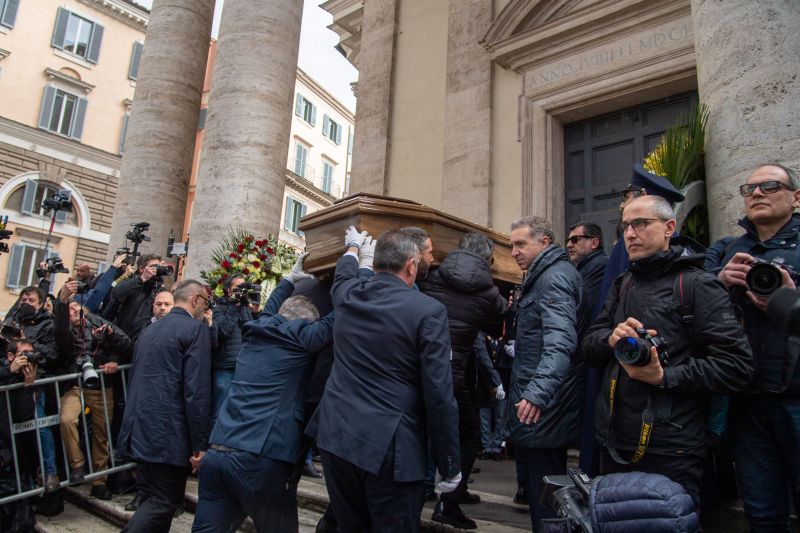 ROMA (ITALPRESS) – ROMA (ITALPRESS) – Sono iniziati con qualche minuto di anticipo rispetto all’orario fissato delle 15.00 i funerali di Maurizio Costanzo, scomparso lo scorso venerdì a Roma all’età di 84 anni. A mezz’ora dall’inizio, la chiesa di Santa Maria in Montesanto a piazza del Popolo, conosciuta come la Chiesa degli Artisti, era già gremita. Così come lo era piazza del Popolo, in cui la folla si è riversata per dare l’ultimo saluto al giornalista attraverso i maxischermi. A celebrare il rito funebre è stato il Rettore della basilica don Walter Insero. In prima fila davanti al feretro, sul quale c’era la foto già vista nella camera ardente e la foto del suo amato gatto Filippo, c’erano la moglie Maria De Filippi con il figlio Gabriele e gli altri due figli di Costanzo Saverio e Camilla con i quattro nipoti del giornalista.