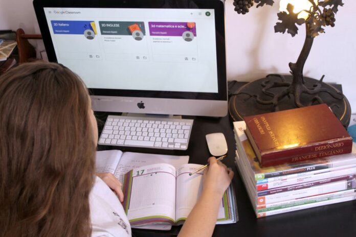 Emergenza Corona Virus - Didattica online e giornata di una teenager in quarantena. Nella foto classroom e materiale didattico nelle classi virtuali (Milano - 2020-03-15, Paolo Diletto / ipa-agency.net) p.s. la foto e' utilizzabile nel rispetto del contesto in cui e' stata scattata, e senza intento diffamatorio del decoro delle persone rappresentate