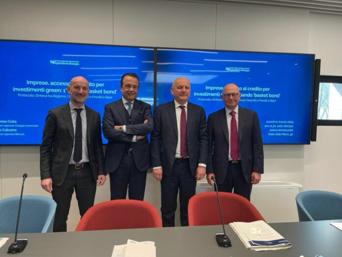 Oggi a Bologna, nella sede della Regione, la presentazione del primo bando regionale con gli assessori regionali Vincenzo Colla (Sviluppo economico e Green economy) e Paolo Calvano (Bilancio), il vicedirettore generale e direttore business di Cdp, Massimo Di Carlo e Marco Mandelli, chief Corporate & Investment Banking Officer di Bper Banca. Nel dettaglio, l’operazione poggia sul protocollo d’intesa siglato tra la Giunta regionale e Cassa Depositi e Prestiti (Cdp) che ha avviato un rapporto di collaborazione proprio per promuovere l’emissione di obbligazioni da parte delle piccole e medie imprese della Emilia-Romagna. Inoltre, la garanzia rilasciata dalla Regione consentirà lo sviluppo di un volume di credito complessivo pari a quattro volte il fondo messo a disposizione, per un totale appunto di 100 milioni di euro.