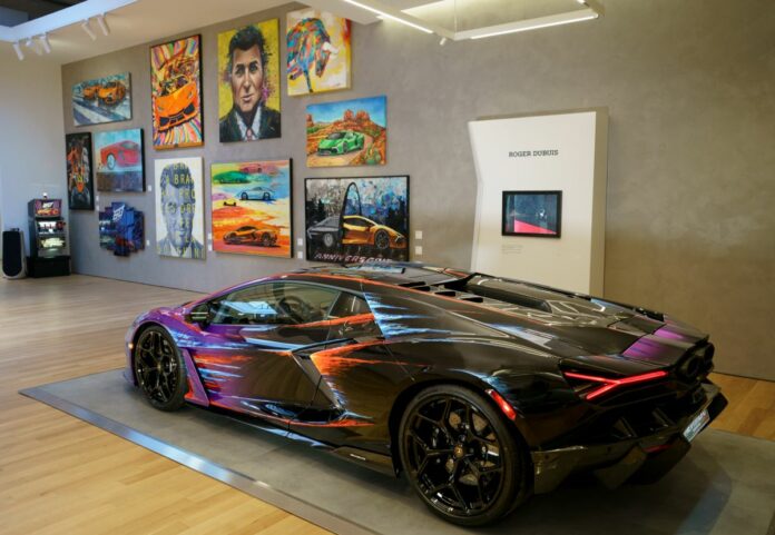 NEW YORK (STATI UNITI) (ITALPRESS) – Automobili Lamborghini presenta “Lamborghini: 60 Years of Artistry in Motion”, un omaggio ai suoi primi sessant’anni. La Lamborghini Lounge NYC ospita una mostra che presenta tutte le opere d’arte commissionate dai concessionari Lamborghini americani in celebrazione del 60° anniversario del marchio. Una selezione delle opere presenti era già stata esposta durante Art Basel Miami Beach all’inizio del mese. Ognuna delle creazioni presentate si ispira in modo unico all’eredità iconica e alla visione sul futuro della Casa di Sant’Agata Bolognese: tele dipinte con tecnica spray, olio su tela di lino e sculture in acciaio e bronzo si affiancano a sneaker personalizzate, una tavola da surf e una slot machine digitale customizzata.