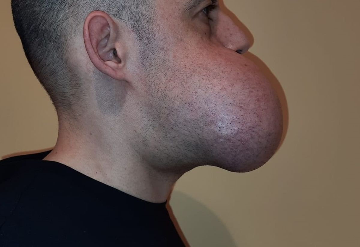 L’ameloblastoma – una neoplasia benigna dell’osso mascellare non metastatica ma molto aggressiva localmente e che origina dalle cellule atte alla produzione dello smalto dentale – aveva compromesso in maniera significativa la vita di Angelo che faticava ormai a deglutire, ad alimentarsi e a respirare. Il tumore, scoperto oltre 20 anni fa, nel tempo è cresciuto intaccando completamente la bocca, la mandibola e il cavo orale, rendendo assolutamente indispensabile l’intervento chirurgico.