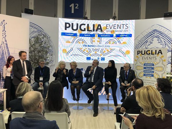 La Regione Puglia si presenta all’ITB di Berlino, il più importante salone internazionale del turismo, annunciando i primi, grandi nomi della stagione culturale 2019. Il palinsesto Puglia Events 2019 è stato presentato dal Presidente della Regione Puglia, Michele Emiliano, e dall’Assessore all’Industria Turistica e Culturale, Loredana Capone in una conferenza stampa internazionale all’interno di Piazza Italia, stand Enit, al fianco degli operatori turistici e culturali pugliesi. Patti Smith a Taranto, Bryan Ferry, Renzo Arbore e grandi jazzisti italiani a Foggia; Ennio Morricone al Bifest e uno straordinario cartellone di appuntamenti tra tradizione, sport, cinema, arte e musica, che valorizzeranno tutta la Puglia, dal Gargano al Salento. Il ministro del Turismo Gian Marco Centinaio ha visitato insieme al Presidente Emiliano il grande stand della Puglia, dove le migliaia di visitatori dell’ITB stanno degustando prodotti eno-gastronomici, ammirando le bellezze della regione e soprattutto dove gli operatori turistici stanno incontrando i maggiori buyer internazionali del viaggio.
