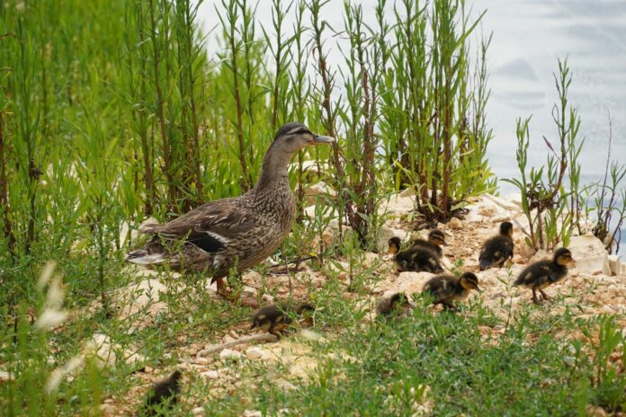 BARI (ITALPRESS) – Sotto le ali delle mamme cresce ben protetta, tra un gioco in acqua e gli insegnamenti per stare al mondo, la nuova generazione di anatroccoli del germano reale, fiero capostipite della maggior parte delle domestiche anatre, che a Casamassima (Bari), nell’impianto di depurazione realizzato e gestito da Acquedotto Pugliese (AQP), ha deciso ormai da anni di far casa. Corpo robusto, collo corto, becco piatto e largo; scuotono la coda e quel capo, dalla chioma marrone, pronta a spiccare in un capoverde.