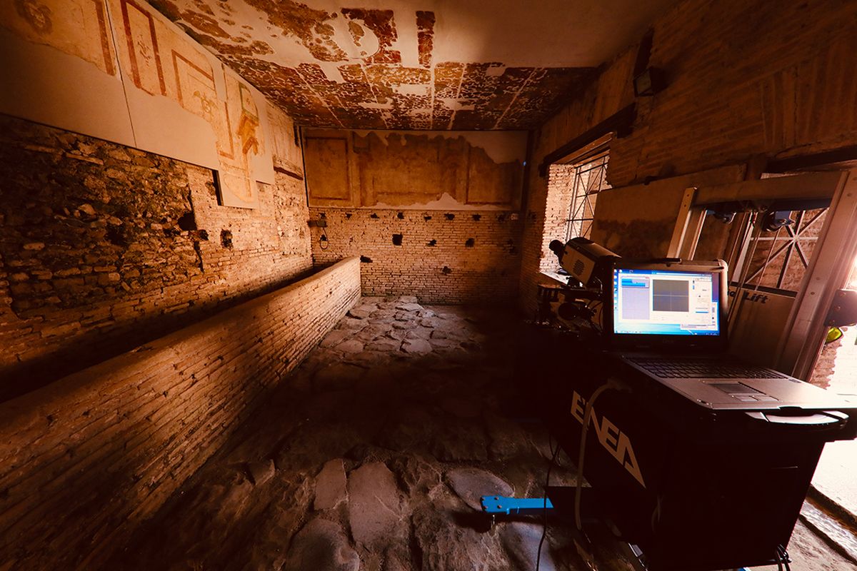 Durante l’evento che vedrà la partecipazione di esperti, ricercatori e rappresentanti di soprintendenze, istituzioni culturali, musei e PMI, sarà possibile anche effettuare la visita virtuale alla Casa di Diana tramite l’app realizzata appositamente da Next-Ingegneria dei Sistemi e disponibile su tablet 5G. ENEA, con il Laboratorio di Diagnostica e metrologia, ha arricchito la visita virtuale del forte Pastiss, non visitabile, con i risultati delle analisi sui quadri del Museo Pietro Micca, che hanno rivelato particolari invisibili a occhio nudo o scomparsi, come stemmi e firme. Per la Casa di Diana del Parco Archeologico di Ostia Antica, ugualmente chiusa al pubblico, è stata realizzata invece una visita virtuale dei vari ambienti in cui i livelli multimediali creati da ENEA restituiscono informazioni sulle diverse fasi costruttive e di restauro dell’edificio. Per l’Aula Isiaca del Parco del Colosseo è stato anche possibile “ricollocare” virtualmente negli spazi originali una decorazione ad affresco conservata in altro luogo.