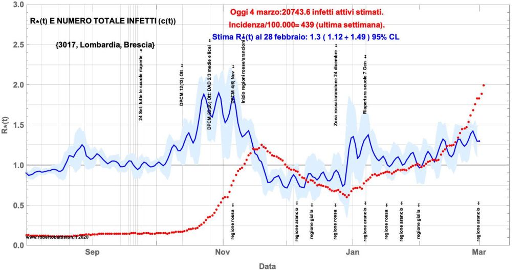 “Riteniamo – continuano – che l’analisi quotidiana dei dati di contagio, nella forma più efficace anche da un punto di vista comunicativo, debba essere un fattore fondamentale a disposizione di tutti i cittadini a partire, a maggior ragione, del Governo e del Premier, come primo dato la mattina ed ultimo la sera. Tutti dobbiamo essere informati sull’andamento tendenziale dell’epidemia, con un dettaglio che deve passare dal livello regionale a quello provinciale, e, ove possibile, a quello comunale”. “A Brescia la terza ondata era chiara ed evidente da Dicembre, la curva degli infetti cambia pendenza ed inizia a crescere in maniera impressionante già da Capodanno, in un corrispondenza di un netto salto in Rt che poi si è mantenuto sopra 1, in controtendenza con l’ andamento regionale. Perché la decisione di chiudere non è stata presa almeno tre-quattro settimane prima? si chiedono Artom e Battiston.