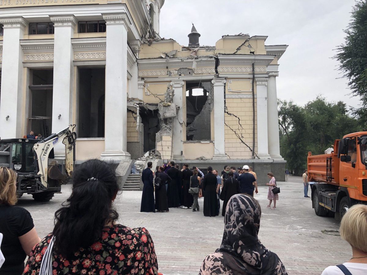 Con la luce del giorno una folla di abitanti di Odessa si é raccolta intorno al monumento per osservare la ferita arrecata alla cittá. Tra loro, gente che normalmente non vanno in chiesa durante le feste religiose, ma che comunque sentono la cattedrale come parte integrante della cittá.