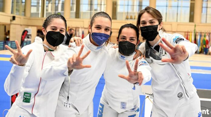 ROMA (ITALPRESS) – Nella giornata di chiusura della Coppa del Mondo di spada le azzurre Federica Isola, Alberta Santuccio, Giulia Rizzi e Roberta Marzani conquistano terzo gradino del podio a Barcellona. Il quartetto italiano, dopo avere perso la semifinale contro la Francia, che si è aggiudicata la vittoria della tappa odierna, sono riuscite a riscattarsi nella finale per il terzo posto superando 42-35 la Germania e confermando il piazzamento già ottenuto nella prima tappa della stagione a Tallinn. A Sochi gli spadisti Andrea Santarelli, Gabriele Cimini, Davide Di Veroli e Federico Vismara sono usciti invece nel tabellone dei 16 contro il Venezuela per una sola stoccata sul 30-31 e, vincendo poi tutti gli altri assalti validi per i piazzamenti, hanno concluso la loro prova al nono posto in classifica. Le spadiste italiane salgono dunque sul terzo gradino del podio nel corso della Coppa del Mondo di Barcellona. Federica Isola, Alberta Santuccio, Giulia Rizzi e Roberta Marzani hanno infatti ripetuto il piazzamento ottenuto anche nella tappa di Tallinn, confermandosi così ai vertici della spada internazionale. Le azzurre hanno iniziato la loro gara dal tabellone dei 16 vincendo 36-28 sull’Argentina, poi ai quarti hanno battuto gli Stati Uniti col punteggio di 30-29 grazie a un’ultima frazione di Alberta Santuccio che, in un assalto gestito sempre in parità, è riuscita a piazzare la stoccata vincente. In semifinale la squadra italiana nulla ha potuto di fronte alla Francia, che ha avuto la meglio 40-31 e ha poi vinto la prova in finale contro la Russia (45-34). L’Italia si è così giocata la possibilità di salire sul podio nella finalina per il terzo posto contro la Germania, condotta in vantaggio in ogni parziale e vinta 42-35. Un risultato che premia il lavoro fin qui fatto dal ct Dario Chiadò, che ha seguito a bordo pedana le spadiste a Barcellona insieme ai maestri Roberto Cirillo e Daniele Pantoni, alla presenza anche del presidente della Federazione italiana Scherma Paolo Azzi. A Sochi, nell’ultima giornata della terza tappa di Coppa del Mondo di spada maschile, la gara a squadre ha visto invece l’Italia chiudere al nono posto, dopo essere stata eliminata dal tabellone principale agli ottavi di finale contro il Venezuela. Il quartetto azzurro composto da Andrea Santarelli, Gabriele Cimini, Davide Di Veroli e Federico Vismara ha perso per una sola stoccata, con il punteggio di 31-30, il match contro i venezuelani, ma ha continuato ad onorare la tappa del circuito iridato in Russia. Dopo la gioia della gara individuale di ieri, che ha visto il trionfo di Valerio Cuomo, capace di battere in finale il campione olimpico Cannone, ma anche le ottime prestazioni di Santarelli e Vismara che hanno chiuso ai piedi del podio, oggi per il team degli spadisti italiani, incassata la sconfitta nel tabellone da 16, c’è stata da affrontare “un’altra gara” per i piazzamenti dal 9° al 16° posto. E gli azzurri lo hanno fatto nel migliore dei modi. Prima il successo 45-35 sul Brasile, poi il 45-44 con cui è stata superata la Svezia, infine la vittoria 41-37 contro la Francia che è valsa all’Italia il nono posto finale. Vittoria finale della Russia sull’Ucraina per 41-35.