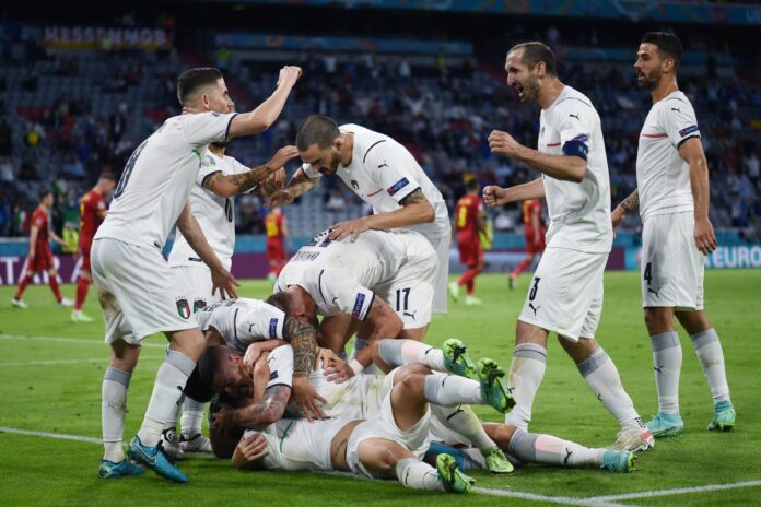 MONACO DI BAVIERA (GERMANIA) (ITALPRESS) – Un’Italia da applausi non si ferma più e approda in semifinale agli Europei per la quinta volta nella sua storia. Al termine di una partita durissima e sofferta, gli azzurri superano il Belgio per 2-1 grazie ai gol di Barella e Insigne e martedì sera a Wembley sfideranno la Spagna per un posto in finale. I ragazzi di Mancini, protagonisti di una prestazione di cuore nonostante le tante difficoltà dovute alle incursioni di De Bruyne e Lukaku – autore su rigore del gol dei Diavoli Rossi – conquistano con merito la sfida dell’Allianz Arena di Monaco di Baviera e adesso possono davvero sognare di alzare il trofeo continentale.