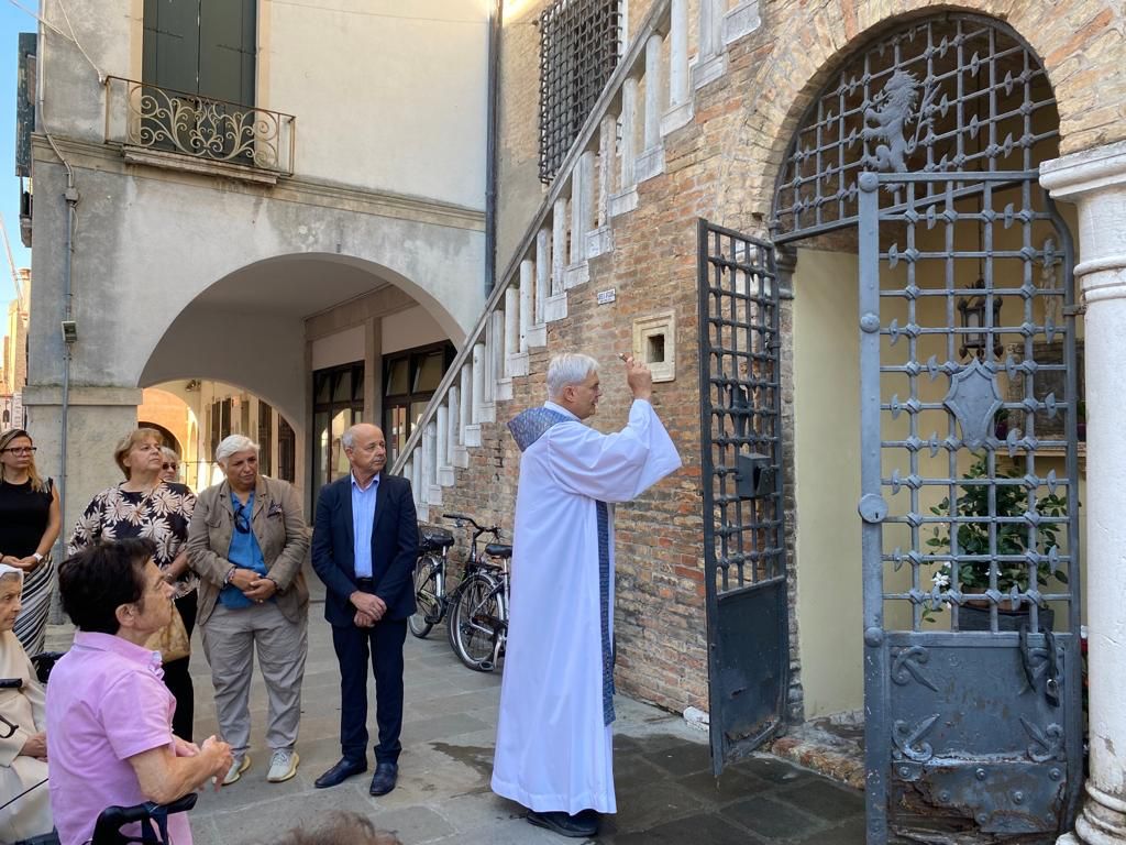 VENEZIA (ITALPRESS) – La Cappella Mariana al Palazzo della Provvederia, che si trova all’angolo tra via Palazzo e via Torre Belfredo a Mestre, è stata oggi benedetta da don Fabio Longoni, dopo la conclusione dei lavori di restauro, realizzati grazie alla donazione di una cittadina. Il sacello votivo è protetto da una cancellata all’interno della quale è contenuta un’immagine sacra della Madonna col bambino. Alla cerimonia – che si è tenuta oggi, 8 settembre, giorno in cui si celebra la natività della Beata Vergine Maria – sono intervenuti, tra gli altri, l’assessore comunale al Patrimonio, Paola Mar, il presidente e la vicepresidente della Municipalità di Mestre Carpenedo, rispettivamente Raffaele Pasqualetto e Paola Tommasi, le consigliere della Municipalità di Chirignago Zelarino, Luisa Rampazzo e Miriam Pessott, ed Ernesta Bonso, la signora che ha fatto la donazione.