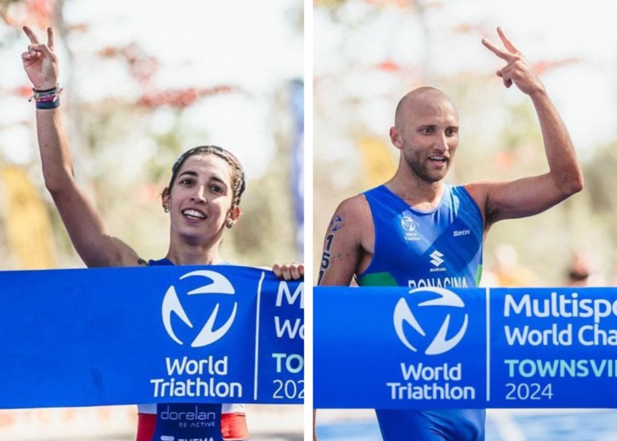 ROMA (ITALPRESS) – Michele Bonacina e Marta Menditto hanno concesso il doppio bis d’oro ai World Triathlon Multisport Championships di Townsville, in Australia. Dopo la doppietta dorata ai Mondiali di triathlon cross di martedì, questa notte i due azzurri hanno centrato il doppio titolo mondiale anche nel duathlon cross. Il duo azzurro è salito sul gradino più alto del podio anche in questa specialità, dominando la gara sul percorso già rodato di Pallarenda Park, che ha previsto per questa nuova prova mondiale una prima frazione di corsa da 6 km, divisi in due giri, un giro unico di 20.5 km di ciclismo mtb e un giro finale da 3.5 km di corsa. Per Federico Spinazzè (K3 Cremona), ancora un sesto posto dopo quello nella prova mondiale di Triathlon Cross.
