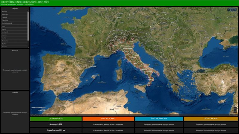 ROMA (ITALPRESS) – Da oggi è attivo il nuovo Geoportale Incendi boschivi del Comando Unità Forestali, Ambientali e Agroalimentari dell’Arma dei Carabinieri (CUFA). Il Geoportale, raggiungibile anche attraverso il portale istituzionale dell’Arma e all’indirizzo web https://geoportale.incendiboschivi.it è uno strumento moderno e di immediata fruizione, per enti/organismi e semplici cittadini che vogliono conoscere la distribuzione e l’estensione geografica del fenomeno nelle regioni a statuto ordinario dove opera la componente forestale dell’Arma dei Carabinieri, e possono interagire per acquisire informazioni di natura ambientale ed ecosistemica che verranno gradualmente aggiornate ed implementate.