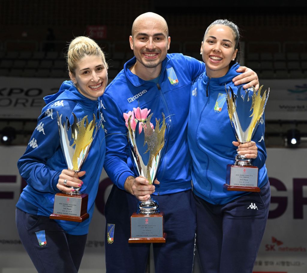 Tre medaglie di enorme valore, nel GP FIE in Corea, per la spedizione italiana guidata dal CT Stefano Cerioni, che vola a quota 26 medaglie conquistate nelle 18 gare fin qui disputate in Coppa del Mondo tra uomini e donne nella specialità del fioretto, di cui ben nove vinte. Anche nella trasferta asiatica conferme e piacevoli novità: primo successo quest’anno per Alessio Foconi (che era stato secondo all’esordio nella tappa di Bonn) battendo il campione olimpico Cheung, e tra le ragazze terzo podio in stagione per Volpi cui si aggiunge la prima volta in “zona medaglie” di Martina Sinigalia.