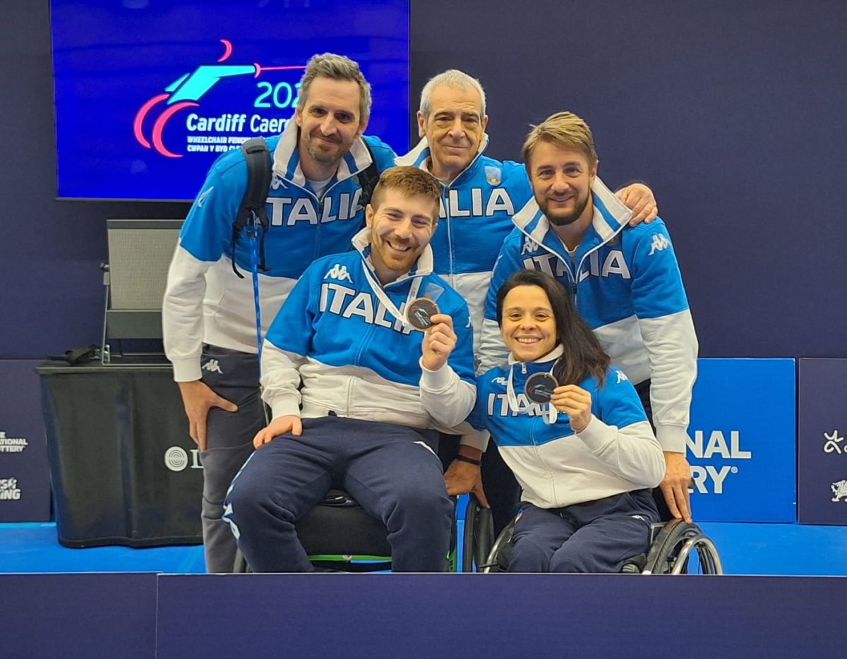 CARDIFF (GALLES) (ITALPRESS) – Ancora due medaglie per l’Italia nella tappa di Coppa del Mondo Paralimpica a Cardiff. Nella seconda giornata di gare sono di bronzo le prove di Rossana Pasquino nella sciabola femminile B e di Matteo Dei Rossi nella spada maschile A. La spedizione azzurra sale così a tre podi dopo l’argento di Gianmarco Paolucci nella sciabola maschile B di ieri. Sale ancora una volta sul podio Rossana Pasquino a pochi mesi dalla doppia medaglia nei Campionati del Mondo di Terni 2023. La sciabolatrice campana ha iniziato la sua gara negli ottavi di finaler superando per 15-4 la tedesca Hutter. Nei quarti l’atleta delle Fiamme Oro ha avuto poi la meglio sull’ucraina Doloh con il punteggio di 15-3. In semifinale lo stop contro la cinese Xiao (poi vincitrice) che ha così portato la “prof” Pasquino sul terzo gradino del podio. Nella stessa gara 10^ Julia Anna Markowska ad un passo dalle migliori 8. Grande prestazione anche per Matteo Dei Rossi, terzo tra gli spadisti categoria A. Il veneto ha superato nei primi due incontri della giornata l’indiano Rao 15-7 e il polacco Tender 15-7. Nei quarti di finale grande vittoria dell’atleta della Scherma Treviso M° Ettore Geslao che ha battuto con il punteggio di 15-10 il francese Luca Platania Parisi conquistandosi la certezza della medaglia. In semifinale Dei Rossi è stato superato, per appena 2 stoccate, dal numero 1 del ranking mondiale Piers Gilliver per 15-13 (l’inglese ha poi conquistato la medaglia d’oro). Nella stessa prova 5° Emanuele Lambertini che si è fermato ad un passo dal podio causa la sconfitta per 15-11 contro il cinese Gang Sun (argento). Decimo classificato Edoardo Giordan. Una stoccata ha diviso Loredana Trigilia da un posto tra le migliori 8 nella sciabola femminile A. La portacolori del Gruppo Sportivo Paralimpico della Difesa è stata superata dalla georgiana Zadishvili negli ottavi di finale classificandosi 10^. Nella stessa prova 17^ posizione per Andreea Ionela Mogos.