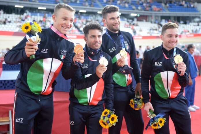 TOKYO (GIAPPONE) (ITALPRESS) – Medaglia d’oro per l’Italia del ciclismo su pista nell’inseguimento di squadre. Gli azzurri (Simone Consonni, Filippo Ganna, Francesco Lamon e Jonathan Milan) hanno battuto la Danimarca. L’Italia ha migliorato ancora il record del mondo realizzato ieri in semifinale, chiudendo in 3’42″032.
