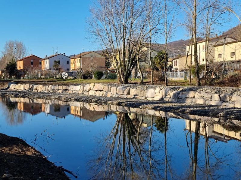 In particolare, sono state realizzate alcune difese di sponda nel tratto ricompreso fra il ponte della Strada Provinciale 9 e il ponte della Variante, caratterizzato da una grande frana sulla destra dell’argine, che sposta l’alveo verso sinistra, erodendo l’area dove si trova il Parco fluviale urbano.