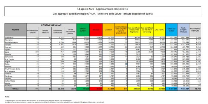 ROMA (ITALPRESS) – Non si arresta la crescita dei casi di coronavirus in Italia. Secondo il bollettino del Ministero della Salute nelle ultime 24 ore si registrano 574 nuovi positivi, in aumento rispetto ai 523 di ieri. Il totale dei positivi raggiunge quota 252.809 dall’inizio dell’epidemia. Maglia nera il Veneto, che registra un incremento di 127 casi. A seguire Lombardia (97) ed Emilia-Romagna (57). Nessun caso invece in Valle d’Aosta e Molise. In calo i deceduti, 3 (ieri erano stati 6). Gli attualmente positivi sono 14.249 (+168). In flessione i ricoverati con sintomi: sono 771, 15 in meno rispetto a ieri. Lieve aumento per i ricoverati nelle terapie intensive, sono 56 (+1 rispetto a ieri). Boom di dimessi/guariti; ad oggi sono 203.326 (+403), mentre in isolamento domiciliare si trovano 13.422 persone (+182).