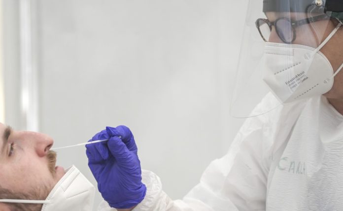 UNIVERSITA' LA SAPIENZA, TAMPONI MOLECOLARI SARS-COV-2 GRATUITI PER GLI STUDENTI TAMPONE DIAGNOSTICA TRACCIAMENTO COVID-19 CORONAVIRUS STUDENTE PERSONALE MEDICO SANITARIO IN ABBIGLIAMENTO PROTETTIVO VISIERA PROTETTIVA