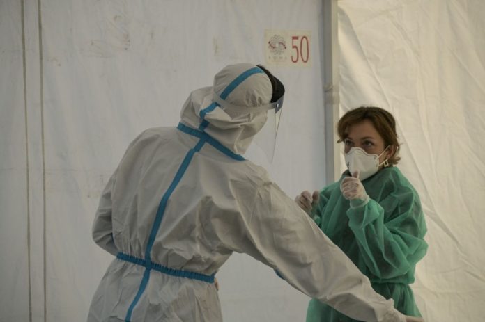 SCREENING DAY UN TEST PER UN SORRISO TAMPONE TAMPONI COVID-19 GRATUITI ALLO STADIO SPORTIVO DI CARACALLA PERSONALE SANITARIO TUTA PROTETTIVA USA E GETTA VISIERA