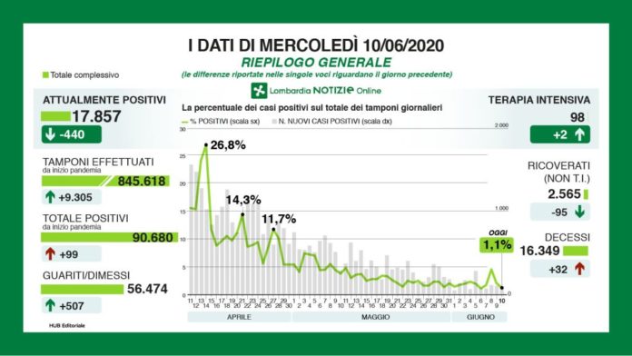 Coronavirus, in Lombardia 99 nuovi casi e 32 morti