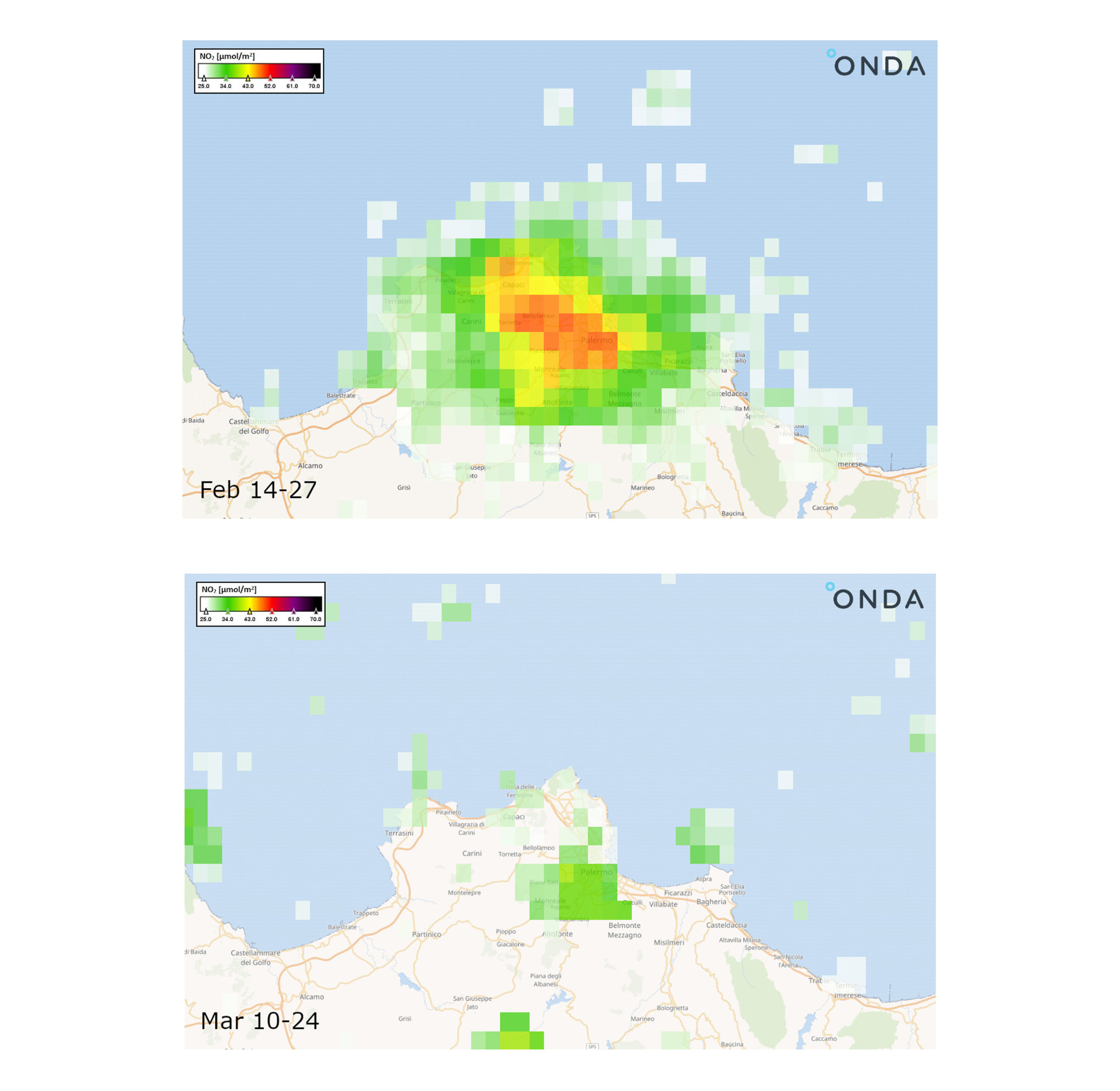 PALERMO (ITALPRESS) – I dati rilevati dal satellite Copernicus sentinel 5P, con le foto elaborate dalla piattaforma Onda della Serco di Frascati, mostrano in modo chiaro come, nel giro di un mese, con la drastica riduzione del traffico veicolare e di tutta una serie di attivita’ inquinanti, come gia’ la Fondazione UniVerde aveva rilanciato il dato sul Nord Italia e su Roma, anche su Palermo c’e’ stata una grande diminuzione delle polveri sottili nell’atmosfera.