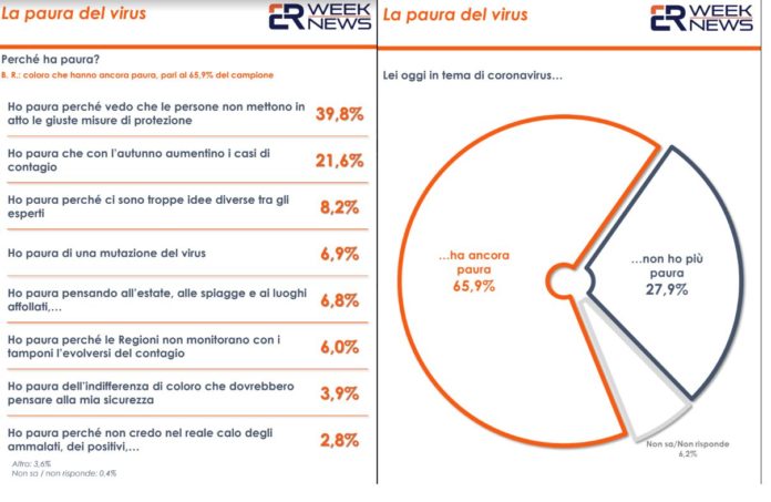Paure che si alimentano soprattutto “per il lassismo di alcune persone nel mettere in atto le giuste misure di protezione”, oltre che per l’ipotesi di un aumento dei contagi con l’arrivo dell’autunno e della stagione fredda. E’ quanto risulta da un sondaggio di Euromedia Research.