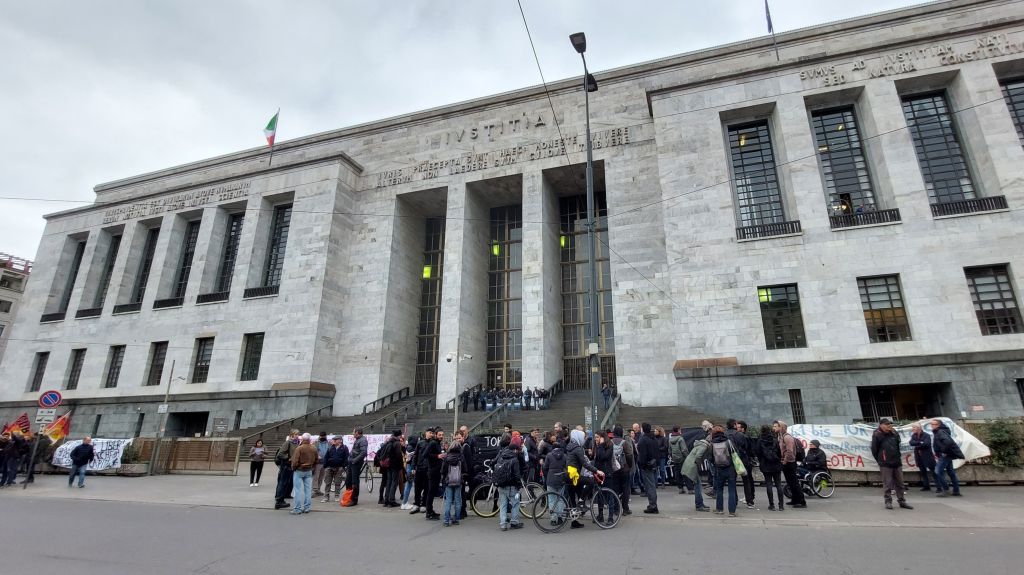 MILANO (ITALPRESS) – Una quarantina di anarchici si sono riuniti davanti al Palazzo di Giustizia di Milano per una manifestazione di solidarietà nei confronti di Alfredo Cospito e, più in generale, contro il regime del 41 bis, proprio mentre all’ospedale San Paolo, dove l’anarchico si trova ricoverato per complicanze dovute allo sciopero della fame, è in corso l’udienza sull’istanza presentata dalla difesa per il differimento della pena ai domiciliari a casa della sorella. Diversi gli striscioni esposti, tra i quali alcuni recitavano: “41 bis tortura di Stato contro carcere/repressione, condizioni di vita e lavoro. Lotta di classe” e “No al 41 bis, Stato assassino”. Il Tribunale è presidiato dalla Polizia in tenuta antisommossa. (ITALPRESS).