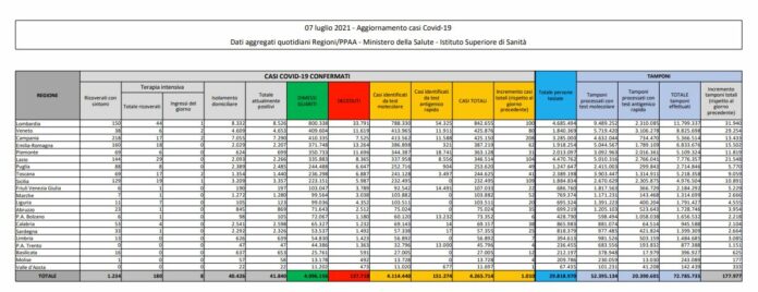 I guariti sono oggi 1.735 mentre gli attuali positivi scendono di 739 attestandosi su un numero totale di 41.840. Sempre meno pazienti negli ospedali: 1.234 i ricoverati, in flessione di 37, 180 i pazienti in terapia intensive (-7) e 8 nuovi ingressi. In isolamento domiciliare attualmente si trovano 40.426 persone. La regione con il numero maggiore di nuovi contagiati è la Campania (208), seguita da Sicilia (109) e Lazio (104).