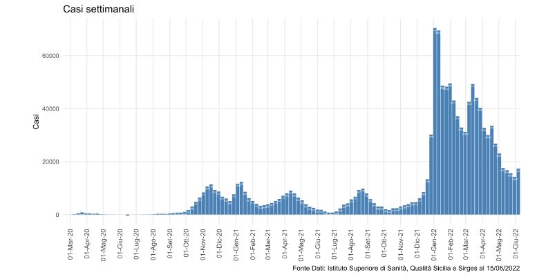 PALERMO (ITALPRESS) – In Sicilia, nella settimana dal 6 al 12 giugno si assiste, per la prima volta dopo due mesi, ad un incremento delle nuove infezioni. L’incidenza di nuovi positivi è pari a 17316 (+21.9%), con un valore cumulativo di 360.64/100.000 abitanti. E’ quanto emerge dal bollettino settimanale a cura del dipartimento Asoe. Il tasso di nuovi casi più elevato rispetto alla media regionale si è registrato nelle province di Catania (424/100.000) e Siracusa (415/100.000). Le fasce d’età maggiormente a rischio risultano quelle tra i 60 e i 69 anni (401/100.000), tra i 45 ed i 59 anni (495/100.000) e tra i 70 ed i 79 anni (386/100.000). Le nuove ospedalizzazioni, invece, si riducono lievemente. I dati relativi alla campagna vaccinale fanno riferimento alla settimana dall’8 al 14 giugno. Nella fascia d’età 5 – 11 anni, i vaccinati con almeno una dose si attestano al 27,58% del target regionale. Hanno completato il ciclo primario 73.110 bambini, pari al 23,72%.