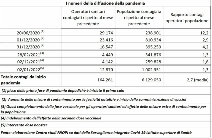 ROMA (ITALPRESS) – L’allarme per i contagi da Covid-19 si estende ora agli operatori sanitari che, secondo l’Istituto Superiore di Sanità, erano 4.142 il 2 dicembre 2021 e sono balzati a 12.870 (+210% in 30 giorni), il 2 gennaio triplicando i contagi. Di questi circa 7.160 sono infermieri. Per la Federazione nazionale degli ordini delle professioni infermieristiche, “la prima cosa da fare è assicurarsi che tutti siano vaccinati, anche perchè l’evidenza mostra che i casi più gravi nelle terapie intensive, sono quasi tutti non vaccinati. Ma non basta. Tutti devono capire che vanno mantenute le misure di sicurezza che rallentano la diffusione del virus. Questo vale per tutti – aggiunge la Fnopi – ma per le istituzioni che programmano l’assistenza, in questo momento di vitale importanza, ribadiamo una ricetta semplice per non lasciare solo nessuno. Ricetta che a quanto pare, però, non vuole essere ascoltata e compresa. Chissà per quali ragioni, visto il ruolo determinante degli infermieri nella pandemia sotto gli occhi di tutti. Dopo averci definiti eroi, senza capire che quello è il nostro lavoro di tutti i giorni, dopo averci applauditi e premiati con bellissime parole, con pochi passi sarebbe ora di passare ai fatti, per rendere più forte, sicura e di qualità l’assistenza”.