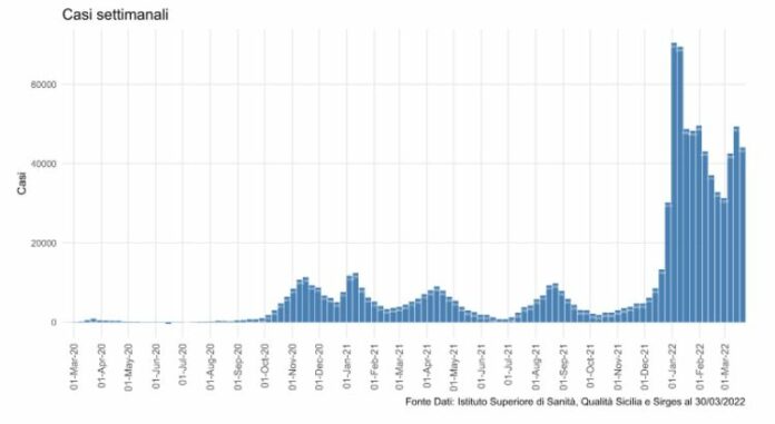 PALERMO (ITALPRESS) – In Sicilia, nella settimana dal 21 al 27 marzo si è registrato un lieve decremento delle infezioni da Covid. L’incidenza di nuovi positivi è pari a 44.072 (-10.63%), con un valore cumulativo di 911.76/100.000 abitanti. Il tasso di nuovi positivi più elevato rispetto alla media regionale si è avuto nelle province di Messina (1468/100.000), Agrigento (1098/100.000), Ragusa (977/100.000) e Palermo (975/100.000). Le fasce d’età maggiormente a rischio risultano quelle tra gli 11 ed i 13 anni, (1505/100.000 abitanti), i 6 ed i 10 anni (1501/100.000) e tra i 14 ed i 18 anni (1213/100.000). Prosegue il netto trend in calo di nuove ospedalizzazioni e la proporzione di casi ospedalizzati è molto più contenuta rispetto ai periodi precedenti, in parte spiegata dal riscontro occasionale di positività concomitante al ricovero. E’ quanto emerge dal bollettino del dipartimento Asoe.