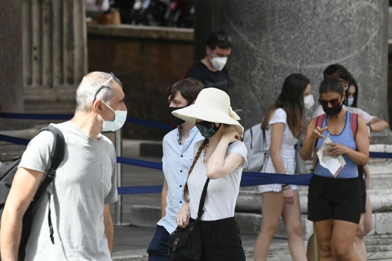 PERSONE CON LE MASCHERINE ALL'APERTO A ROMA NONOSTANTE LO STOP ALL'OBBLIGO DI INDOSSARLE