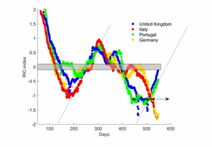 ROMA (ITALPRESS) – Pubblicato sulla rivista Scientific Reports un articolo che introduce un nuovo indice alternativo in grado di descrivere in maniera quantitativa la dinamica della pandemia da Covid-19. Gli autori dello studio appartengono al Gruppo di ricerca Covid-19 coordinato da Ricmass, a cui contribuiscono ricercatori di Consiglio nazionale delle ricerche, Infn e dell’Università di Camerino. “La dinamica della diffusione di Covid-19 nelle regioni italiane è accuratamente descritta mediante un nuovo indice, alternativo ai noti parametri Rt (tasso di riproduzione) e Td (tempo di raddoppio) comunemente utilizzati, identificato dopo gli studi effettuati durante la prima ondata”, spiega Giampietro Ravagnan dell’Istituto di Farmacologia Traslazionale del Cnr coautore del lavoro. “L’algoritmo per la determinazione dell’Indice Ricmass è stato testato durante la seconda ondata. Come risulta dalla ricerca, esso fornisce un approccio quantitativo in grado di descrivere la dinamica della pandemia attraverso l’espansione dello spazio dei parametri, ovvero monitorando l’evoluzione della coppia delle variabili Td Rt comunemente usate”, aggiunge Campi. Td indica il tempo impiegato dal numero di individui infetti per raddoppiare, e viene estratto dalle curve cumulative dei casi totali. Il numero riproduttivo Rt indica invece il numero medio di contagiati per singolo caso positivo in un dato intervallo temporale di osservazione e viene estratto dalle curve del numero di contagi attivi. “Entrambi evolvono nel tempo indipendentemente mentre il singolo RIC-index dà un’informazione diretta della velocità di crescita. I dati dell’evoluzione temporale del RIC-index descrivono l’andamento per le regioni italiane e per i paesi europei: l’algoritmo ha mostrato il successo della campagna di vaccinazione in Italia e anticipato l’emergere della incidenza della variante Delta a metà luglio osservata prima nel Regno Unito e in Portogallo. Questo nuovo approccio fisico-matematico appare quindi estremamente utile per predire l’evoluzione di Covid-19 in Europa, soprattutto oggi che si configura una situazione senza precedenti, con la competizione tra: velocità di realizzazione del piano vaccinale nazionale, europeo e globale; velocità di trasmissione della variante Delta; possibile emergere di una nuova variante, data l’assenza di una politica di tracciamento efficace”, conclude Bianconi.
