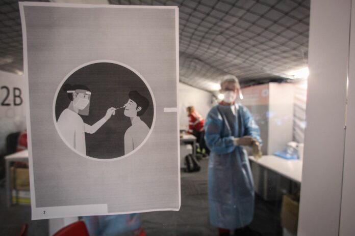 STAZIONE TERMINI, TAMPONI RAPIDI GRATUITI DA PARTE DELLA CROCE ROSSA ITALIANA, COVID 19, CORONAVIRUS, CARTELLO, TAMPONE