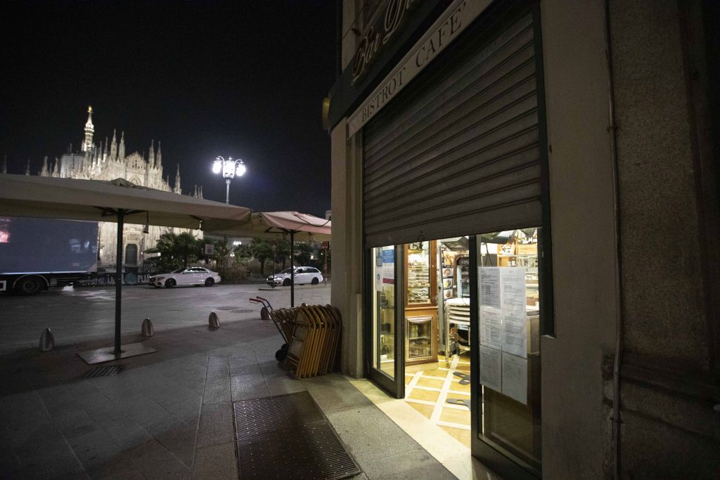 CORONAVIRUS COVID 19 COPRIFUOCO ORE 23 A MILANO CHIUSURA BAR LOCALI RISTORANTI LOCALE RISTORANTE PIAZZA DUOMO CRISI ECONOMICA COMMERCIO RISTORAZIONE CAMERIERE RISTORATORE
