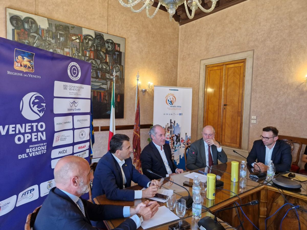VENEZIA (ITALPRESS) – Gaiba (Ro) si riconferma protagonista del tennis internazionale con Veneto Open Promoted by Regione del Veneto, torneo WTA classe 125 che vedrà sfidarsi dal 16 al 23 giugno sette tra le tenniste della top 100 al mondo della classifica WTA. Il torneo, organizzato dal Tennis Club di Gaiba, e giunto alla terza edizione, è uno degli otto tornei internazionali del circuito maggiore, e unico in Italia, che si gioca sull’erba naturale. Alla conferenza stampa di presentazione sono intervenuti il Presidente della Regione del Veneto, l’Assessore regionale allo Sport, Angelo Binaghi presidente della Federazione Italiana Tennis, il Presidente della Provincia di Rovigo, il Sindaco di Gaiba, Elia Arbustini direttore del torneo, Paolo Armenio vicepresidente di Confindustria Veneto Est e Leonora Vegro per Intesa Sanpaolo.