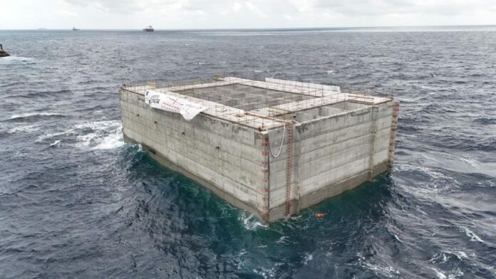 GENOVA (ITALPRESS) – Prende forma, al largo del porto di Genova, la nuova diga foranea. Nel cantiere marittimo del consorzio PerGenova Breakwater guidato da Webuild, è stato posato a 25 metri di profondità il primo degli oltre 90 cassoni che comporranno i primi 4 km dei 6 km complessivi dell’opera, i cui lavori vanno avanti senza sosta. Ad assistere alle operazioni di posa, il Ministro delle Infrastrutture e dei trasporti Matteo Salvini, insieme al Viceministro delle Infrastrutture e dei trasporti Edoardo Rixi, al commissario straordinario dell’Autorità di Sistema Portuale del Mar Ligure Occidentale Paolo Piacenza, al presidente facente funzione della Regione Liguria Alessandro Piana, al sindaco di Genova e commissario straordinario per la diga Marco Bucci, e a Pietro Salini, amministratore delegato Webuild.