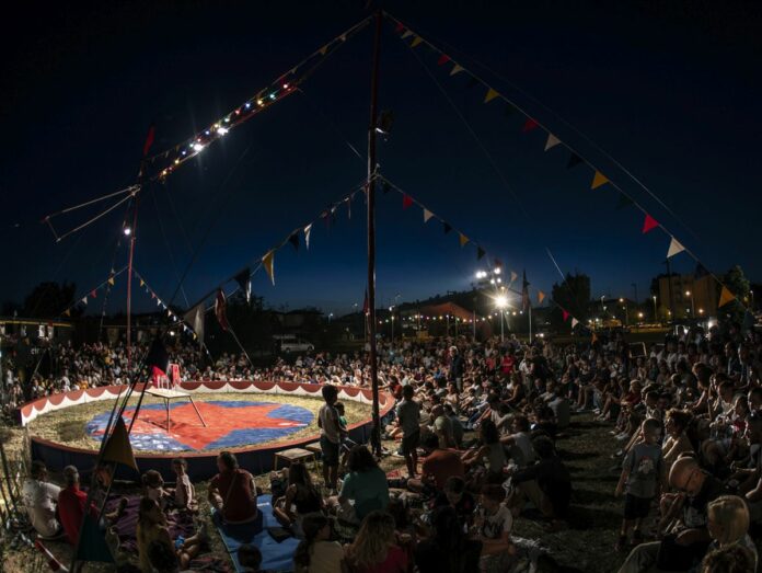 BOLOGNA (ITALPRESS) – Dopo le felici esperienze del 2016 e del 2018, ancora un successo straordinario per il Cirque Bidon: la compagnia francese, che si sposta su carrozze trainate da cavalli, è tornata in Emilia-Romagna per un lungo tour realizzato da Ater Fondazione e Teatro Necessario Circo – centro di produzione di circo contemporaneo, che dal 29 maggio a oggi ha fatto tappa in 15 comuni della regione, realizzando 69 repliche e accogliendo 31.000 spettatori. Gli ultimi 5 spettacoli andranno in scena al festival internazionale di circo contemporaneo, teatro e musica “Tutti Matti per Colorno” (Pr), da mercoledì 30 agosto a domenica 3 settembre, sempre alle ore 21.30. Il tour arriverà così a un totale di 74 repliche. Nonostante le gravi difficoltà dovute alla tragica alluvione che in maggio ha colpito parte della Regione Emilia-Romagna e grazie all’impegno delle Amministrazioni e delle popolazioni locali, che hanno lavorato strenuamente per ripristinare la situazione, il tour del Cirque Bidon ha preso il via lo scorso 29 maggio da Castel San Pietro Terme (Bo) e da qui ha iniziato un lungo viaggio, scandito dal ritmo lento delle sue splendide carrozze e dei suoi cavalli, passando da Lugo (Ra), Argelato (Bo), Bologna, San Giovanni in Persiceto (Bo), Spilamberto (Mo), Modena, Correggio (RE), Quattro Castella (RE), San Bartolomeo (RE), Bibbiano (RE), Montechiarugolo (Pr), Sant’Ilario d’Enza (RE), Parma, Ragazzola (Pr); ultima tappa sarà appunto Colorno (Pr). Il progetto è stato reso possibile dal sostegno delle amministrazioni locali, della Regione Emilia-Romagna, del Ministero della Cultura, di Fondazione Nuovi Mecenati e di numerose organizzazioni e sponsor locali.