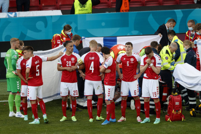 Paura durante Danimarca-Finlandia, prima gara del girone B di Euro 2020 in programma a Copenaghen. Christian Eriksen si e’ accasciato a terra completamente da solo: immediati i soccorsi dello staff danese che hanno praticato il massaggio cardiaco al centrocampista dell’Inter. Attorno al minuto 43 del primo tempo di Danimarca-Finlandia, Christian Eriksen si e’ avvicinato a un compagno di squadra per ricevere la rimessa laterale. A quel punto la palla gli e’ rimbalzata addosso, con la conseguente caduta del centrocampista danese. Non c’e’ stato alcuno scontro fisico con avversari o compagni di squadra. Immediato l’intervento dei medici con un messaggio cardiaco in campo e i compagni, seppur sconvolti, intorno a fare da scudo e proteggerne la privacy. Dopo poco meno di un quarto d’ora, il centrocampista dell’Inter e della Danimarca e’ stato portato fuori dal terreno di gioco.
