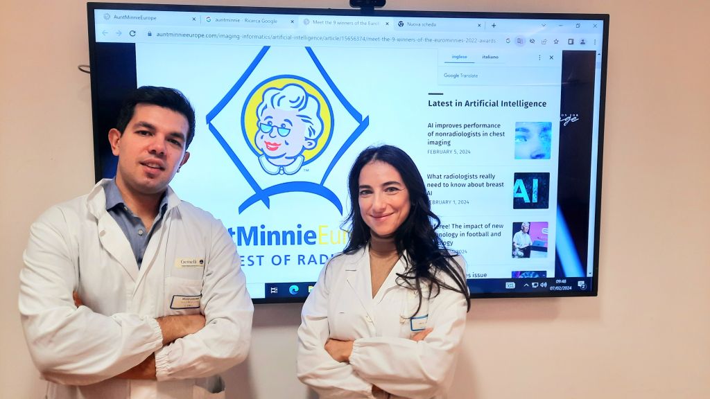 Il nome e il logo sembrano quelli di un cartone animato, ma il sito AuntMinnie* (www.auntminnie.com) è una delle community di radiologia più celebri e frequentate del mondo. Essere citati dalla ‘Zia Minniè per un lavoro scientifico equivale ad un riconoscimento planetario nel settore, ‘pop’ e di enorme visibilità. E l’onore, qualche giorno fa è toccato a due giovanissimi radiologi di Fondazione Policlinico Gemelli, la dottoressa Anna D’Angelo, responsabile di vari progetti di ricerca radiologica senologica e il dottor Matteo Mancino, specializzando al terzo anno in radiodiagnostica. Il lavoro ‘attenzionatò da AuntMinnie è quello che il loro gruppo, diretto dal professor Paolo Belli, ha presentato qualche mese fa al congresso-monster della Radiological Society of North America (RSNA), che ogni anno richiama a Chicago oltre 40 mila radiologi da tutto il mondo.