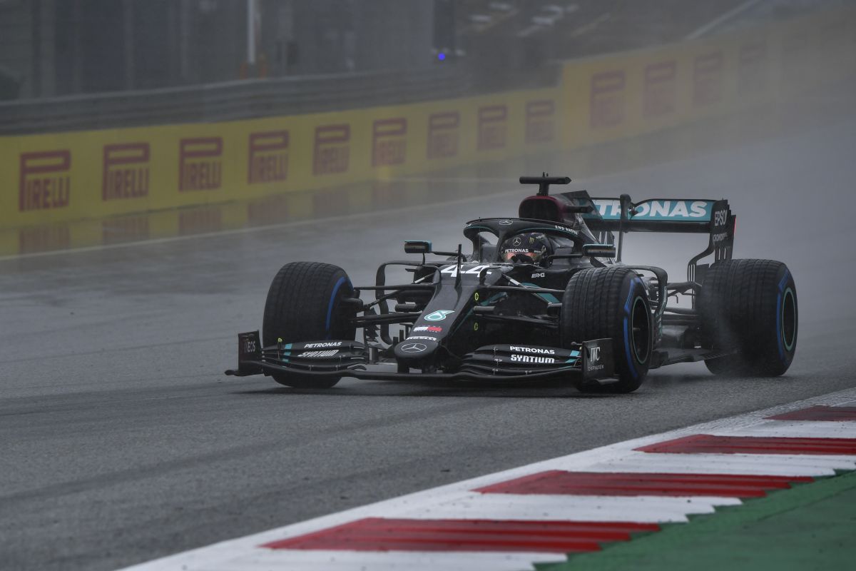 Pole position per Lewis Hamilton al termine delle qualifiche bagnate del Gran Premio di Stiria. Sull’asfalto scivoloso del Red Bull Ring a Spielberg in condizioni estreme è il sei volte campione del mondo della Mercedes a centrare la pole nel secondo appuntamento della stagione grazie a un crono di 1’19″273. Ha provato a sbarrargli la strada Max Verstappen, ma l’oranje della Red Bull si deve accontentare dell secondo posto in griglia. Ottimo terzo posto per Carlos Sainz che con la McLaren firma la sua migliore qualifica di sempre. Al suo fianco scatterà Valtteri Bottas con l’altra nera Mercedes. Delusione per la Ferrari con Sebastian Vettel che non va oltre il decimo crono in Q3 e Leclerc addirittura eliminato in Q2 e che scatterà dalla quattordicesima casella in griglia per una penalizzazione di tre posizioni per aver ostacolato la Alpha Tauri di Kvyat. Quinto tempo per Esteban Ocon con la Renault e sesto per Lando Norris (McLaren), che però verrà penalizzato di tre posizioni in griglia. In top-10 anche Alexander Albon con l’altra Redb Bull, un sorprendente Pierre Gasly con la Alpha Tauri e Daniel Ricciardo con la seconda Renault. La gara di domani (ore 15.10) si prevede sull’asciutto.