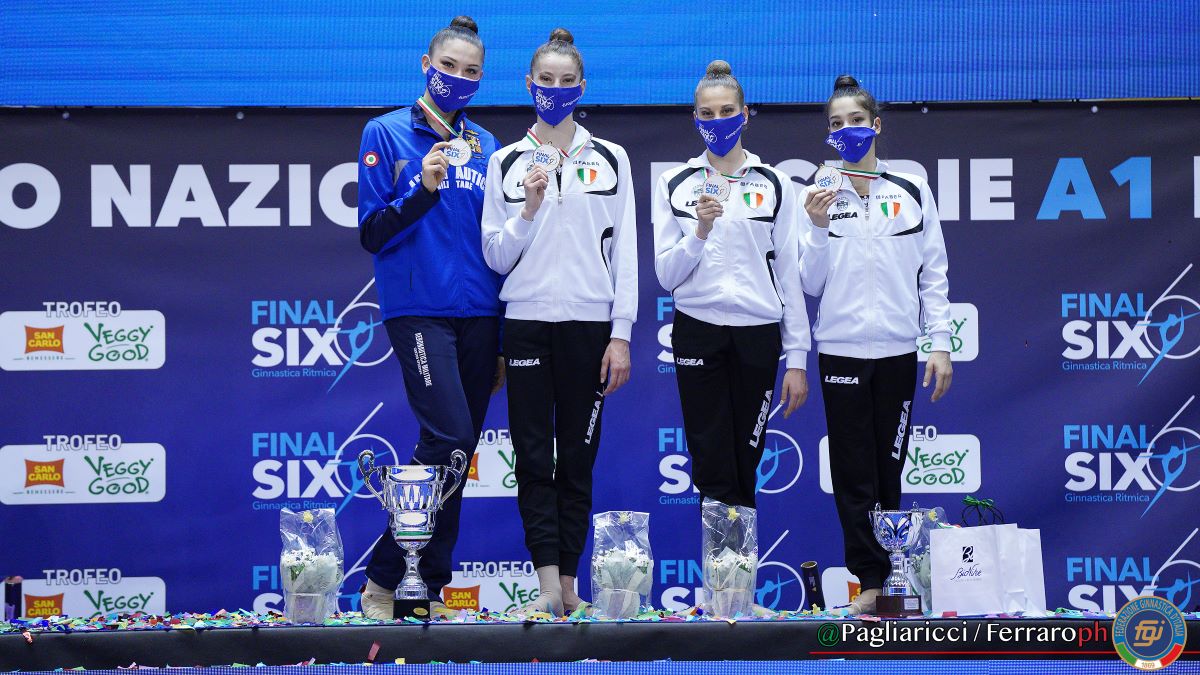 TORINO (ITALPRESS) – Un altro strepitoso spettacolo firmato Eurogymnica Torino e Federazione Ginnastica d’Italia è andato in scena oggi al Pala Gianni Asti di Torino in occasione della Final Six del Campionato Nazionale di Serie A1 e A2 di ginnastica ritmica, Trofeo San Carlo Veggy Good. Sul palcoscenico torinese si sono affrontate in una sfida all’ultimo attrezzo le sei migliori squadre del Campionato Italiano per contendersi l’ambito scudetto del “campionato più bello del mondo”. Grande festa per la Faber Ginnastica Fabriano che, per il quinto anno consecutivo, si aggiudica il titolo tricolore, guidata da Milena Baldassarri e dall’astro nascente Sofia Raffaeli, già plurimedagliata nelle due tappe di Coppa del Mondo delle scorse settimane. Una gara entusiasmante che vede l’Asu Udinese, capitanata da Alexandra Agiurgiuculese, conquistare il secondo gradino del podio a pari merito con la San Giorgio 79 Desio. Seguono al quarto posto pari merito la Iris Giovinazzo e la Forza e Coraggio Milano, e in sesta posizione l’Armonia d’Abruzzo. Le ginnaste sono state premiate dal Presidente della Federazione Ginnastica d’Italia, Gherardo Tecchi, dalla Sindaca di Torino, Chiara Appendino, dall’Assessore allo sport della Regione Piemonte, Fabrizio Ricca e da Luca Nurchi, presidente dell’Eurogymnica Torino. Ad impreziosire la giornata sono state poi le esibizioni della Squadra Nazionali senior della DTN Emanuela Maccarani, e il team juniores plasmato da Julieta Cantaluppi e Laura Zacchilli, che hanno emozionato e fatto sognare atlete, addetti ai lavori e volontari presenti in numero ristretto al Pala Gianni Asti, nel completo rispetto delle norme anti-covid. Nella giornata odierna, inoltre, sono andati in scena anche i playoff di Serie A2 che hanno visto conquistare il terzo e ultimo pass per accedere alla Serie A1 della prossima stagione agonistica all’Auxilium Genova, che si è imposta sulla Pontevecchio Bologna e la Club Giardino Carpi. “Siamo soddisfatti ed emozionati” ha dichiarato il presidente del comitato organizzatore, Luca Nurchi. “In un momento così difficile per tutto lo sport, siamo contenti di aver avuto la possibilità di regalare un bello spettacolo a tutto il pubblico da casa e di aver ospitato una competizione di tale prestigio”.