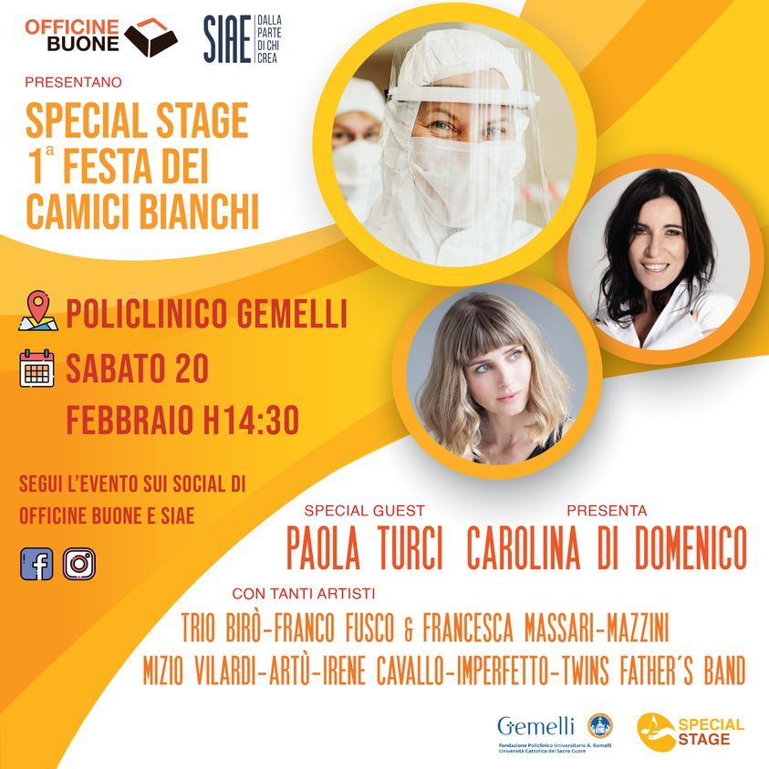 A partire dalle 14.30 il Day Hospital di Oncologia Pediatrica e la terrazza esterna del Day Hospital Spina Bifida del Gemelli ospiteranno artisti presentati da Carolina Di Domenico, conduttrice tv e radio (Radio Rai Due) e Silvia Mazzei, attrice, conosciuta soprattutto per la Fiction in onda su Rai Uno “DOC- Nelle tue mani”. Testimonial dell’evento sarà Paola Turci che si esibirà su questo palco speciale. Tra gli artisti coinvolti i Twins Father’s Band, Artù, Irene Cavallo, Trio Birò, Imperfetto, Mizio, Mazzini, Franco Fusco e Francesca Massari.